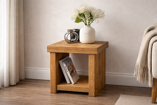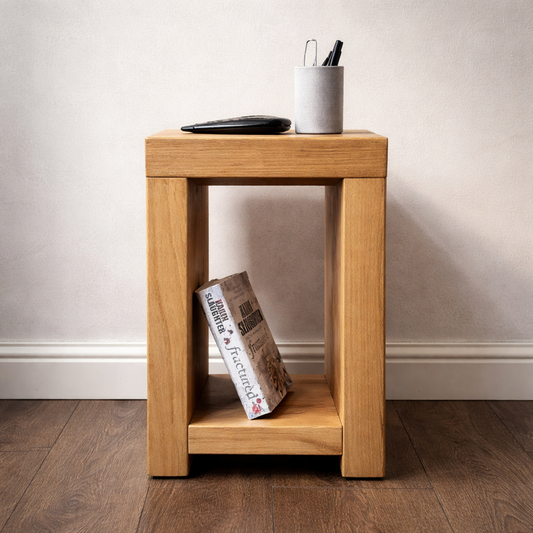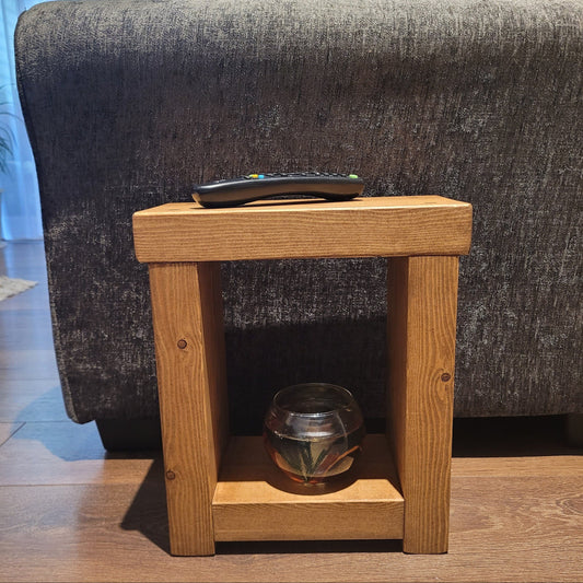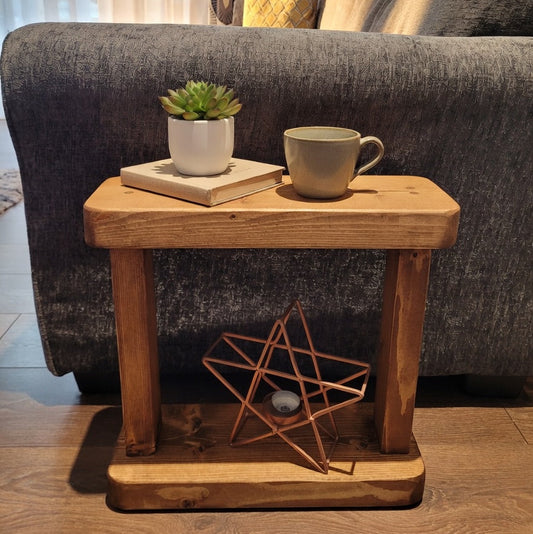 Handmade Rustic Side Table – Solid Wood Mini Side Table UK | Narrow Design